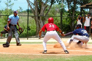 El campocorto Domingo Leyba anotó una carrera al embasarse al recibir transferencia.
